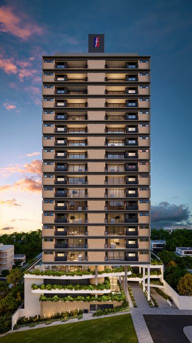 Academia Coworking Playground Salão de festas Espera p/ split Rebaixo em gesso 2 Elevadores Tubulação para Água quente Hall de entrada com pé direito duplo Living Integrado Persiana nos dormitórios Sistema de segurança por câmeras Churrasqueira a carvão Gerador de energia para as áreas comuns Sacada com guarda-corpo em vidro Laje técnica para split PORCELANATO RETIFICADO Área Externa Espaço Ioga Ampla Área Privativa Localização Privilegiada Fachada Angular